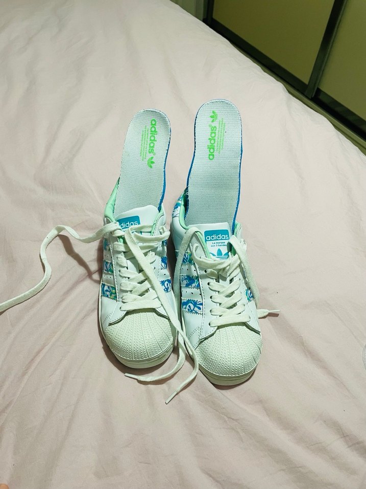 Bu Adidas kadın spor ayakkabısı, pastel tonlarda bağcıklı ve cırt cırtlı, kauçuk malzemeden yapılmış ve dolgu topuklu. Spor ve günlük şıklık için uygundur.