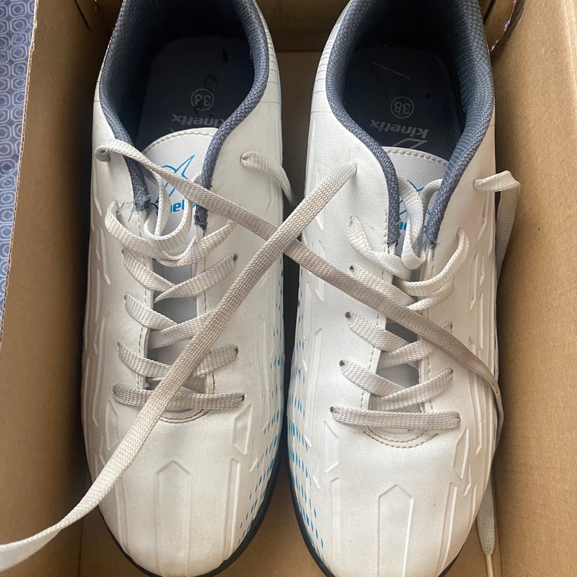 Bağcıklı, beyaz renkli erkek futbol ayakkabısı. Kauçuk malzemeden üretilmiş, spor ve sokak tarzına uygun sade tasarım. Az kullanılmıştır