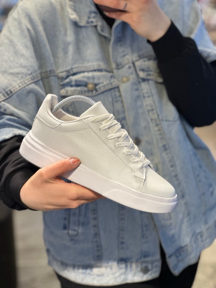 Beyaz bağcıklı erkek sneaker desensiz tasarıma sahip, günlük kullanıma uygun. Sokak stiline uyum sağlar. 40-41-42-43-44 numaraları mevcut