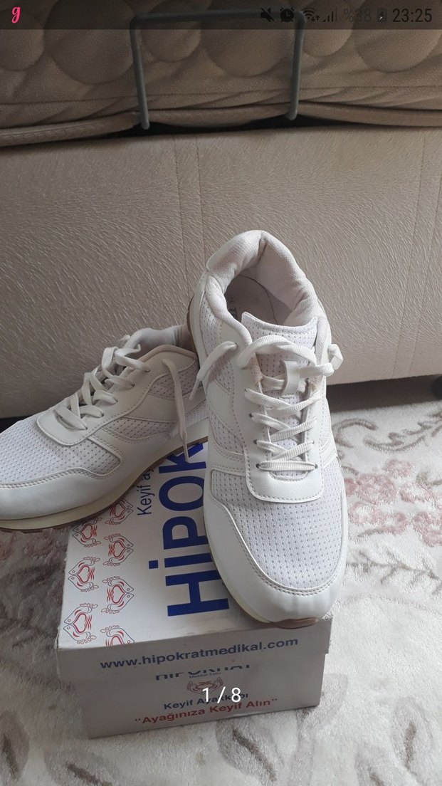 Beyaz, bağcıklı ve erkek spor ayakkabısı. Kauçuk malzeme ve desensiz. Flo mağazasından almıştim. çok az giyildi