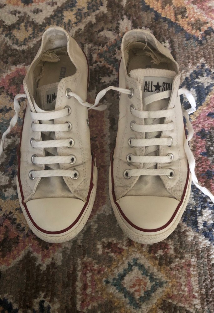 Pamuklu, bağcıklı ve elastik özelliklere sahip beyaz spor ayakkabılar, günlük kullanıma uygun hafif batik desenlidir. 39.5 numara fotoğrafta kusurları belirtilmiştir yeni yıkanmış temizdir.