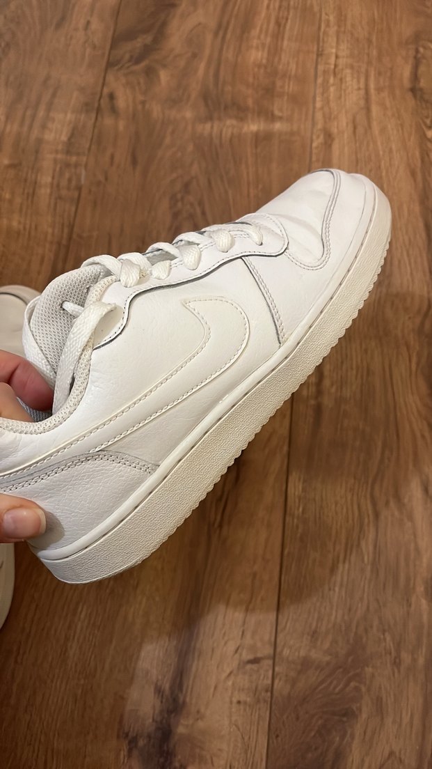 Beyaz, bağcıklı kadın spor ayakkabısı, blok topuklu ve kauçuk tabanlı. Spor ve sokak stiline uygun, desensiz ve hafif tasarım.