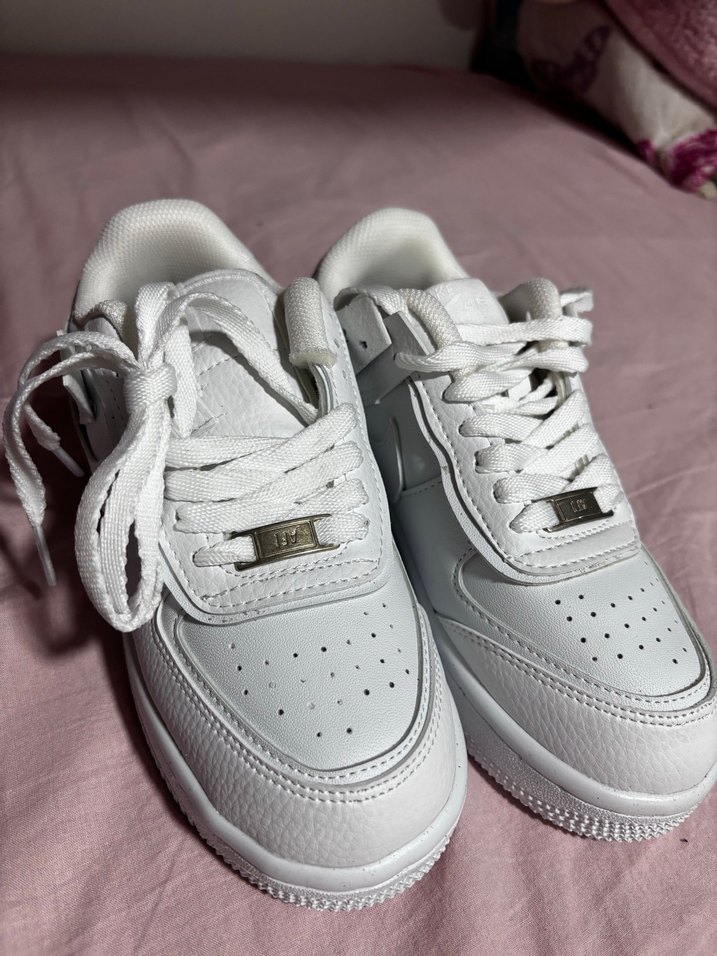 Günlük kullanım için tasarlanmış, bağcıklı ve ince topuklu beyaz kadın spor ayakkabısı. Düz ve pastel tonlarda, sade sokak stiliyle uyumlu. Hiç giymedim orjinal değil