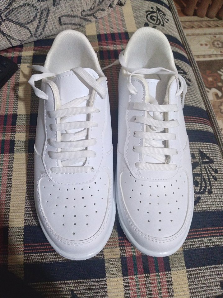 Beyaz bağcıklı kadın spor ayakkabısı, stiletto topuklu ve kauçuk tabanlıdır. Günlük ve athleisure tarz için uygundur. Hafif ve desensizdir. iade kabul etmiyorum