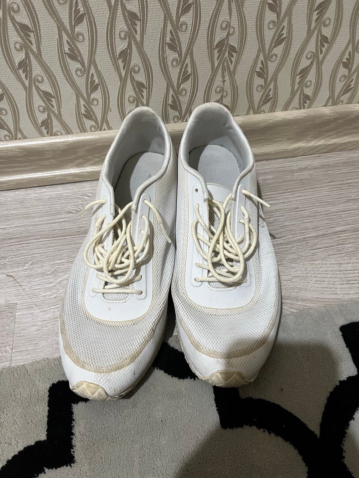 Beyaz bağcıklı, kauçuk tabanlı kadın spor ayakkabısıdır. Günlük rahat ve trend sokak stili için uygundur.