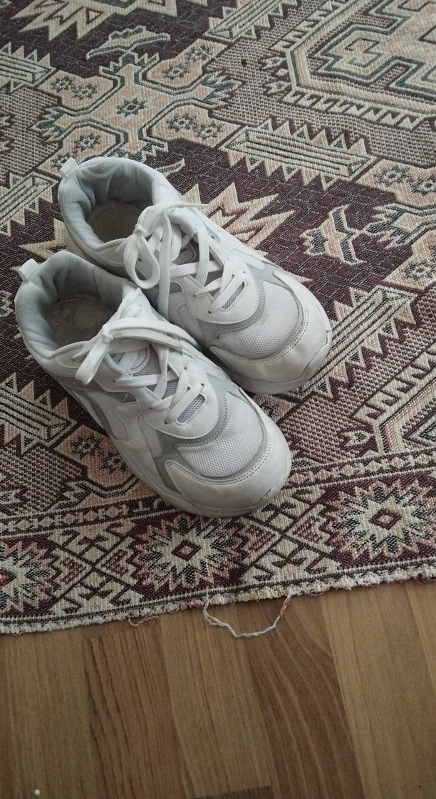 Beyaz Bağcıklı Kadın Spor Ayakkabı