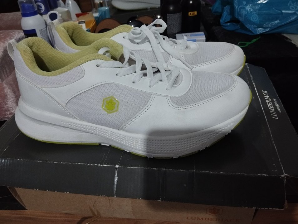 Bağcıklı, baskılı detaylara sahip beyaz kadın spor ayakkabısı, kauçuk tabanlıdır ve sokak stili ile athleisure için uygundur. ürünü çok az kullandım tertemiz dir