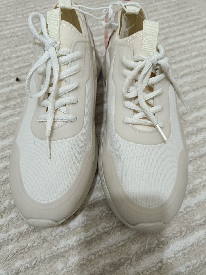 Beyaz renkte, bağcıklı ve dolgu topuklu kadın spor ayakkabısıdır. Kauçuk tabanlı, desen içermeyen tasarımıyla sportif sokak stiline uygundur. not 40 dan başlıyor 45 numaraya kadar mevcut