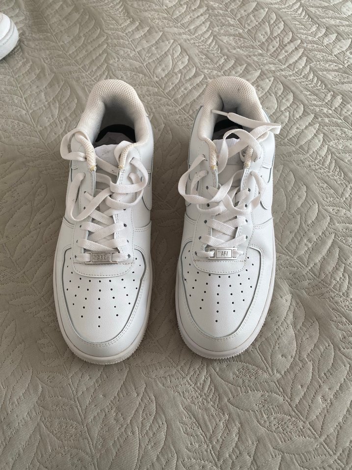 Beyaz, bağcıklı, ince topuklu kadın spor ayakkabısı. Kauçuk tabanlı, günlük kullanım için uygun, sade ve sokak stiliyle uyumlu.