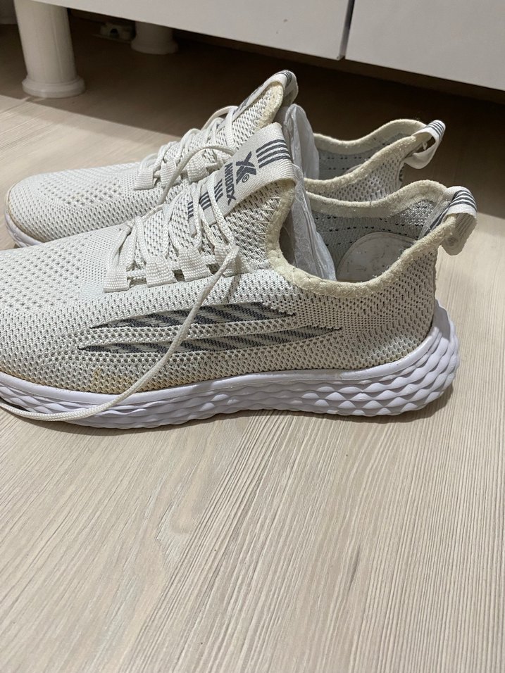 Nefes alabilen hafif kumaş, bağcıklı tasarım ve dokulu kauçuk tabanlı beyaz kadın spor ayakkabısı.