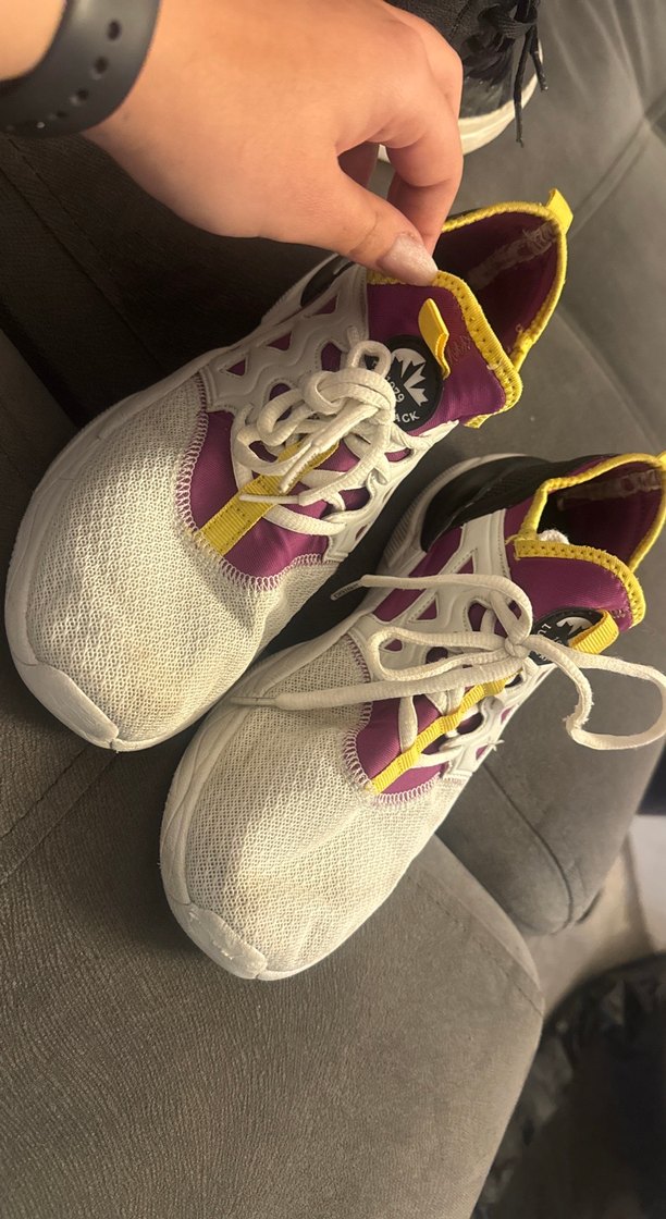 Beyaz bağcıklı kadın spor ayakkabısı, kama topuklu ve hafif batik desenli. Kauçuk tabanlı, trend ve rahat sokak stili için uygundur. tabanı skechers kadar rahat