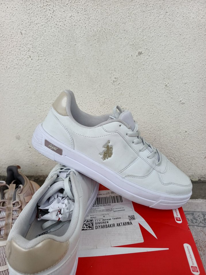 Beyaz Bağcıklı Kadın Spor Ayakkabı polo orjinal üründür