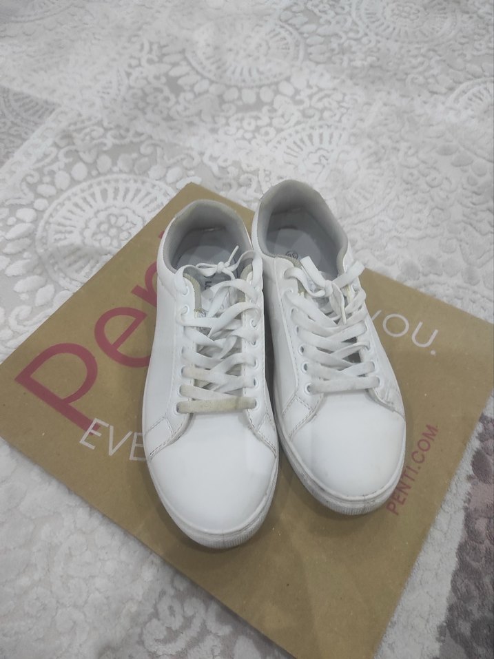 Beyaz Bağcıklı Kadın Stiletto Spor Ayakkabı
