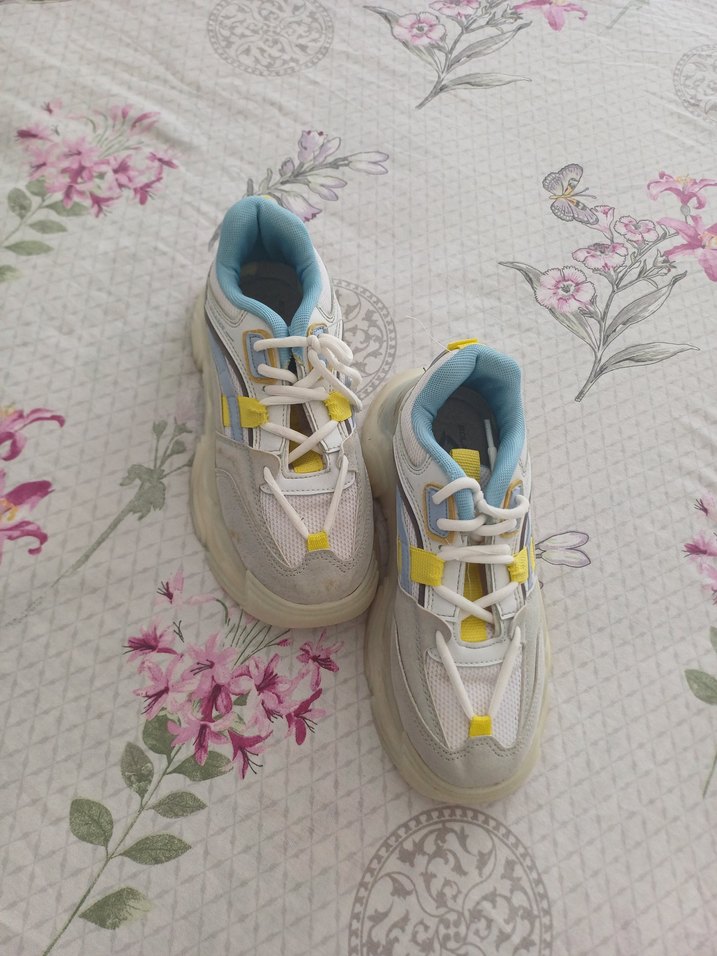 Bağcıklı, beyaz ve pastel renk detaylı, tie-dye desenli kadın spor ayakkabısı, trend sokak stili için uygundur. ♀️ 37 numaradır kusuru yoktur detaylıca resimledim yumuşak iç tabana sahiptir