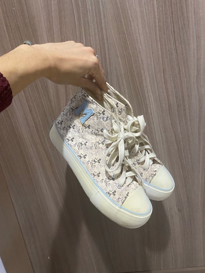 Pastel tonlarda tie-dye desenli, beyaz bağcıklı platform spor ayakkabı. Günlük sokak stili için uygundur.