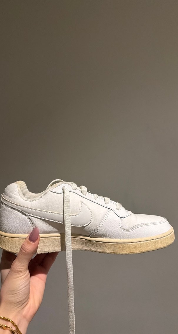 Bağcıklı, stiletto topuklu ve kauçuk tabanlı beyaz kadın spor ayakkabısı. Spor ve sokak giyimine uygun, desensiz ve açık renk tasarım.