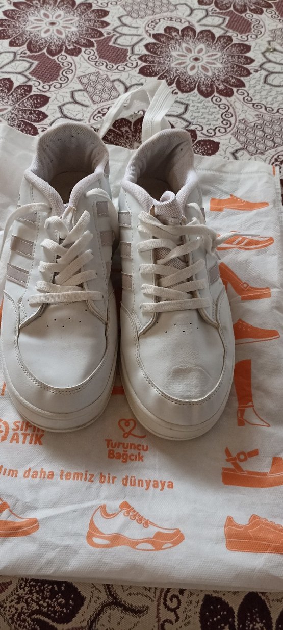 Beyaz bağcıklı, lastik malzemeden spor ayakkabı. Spor ve sokak stiline uygun, desensiz tasarım. Daha temiz bir dünya mesajı içerir. erkek ayakkabı