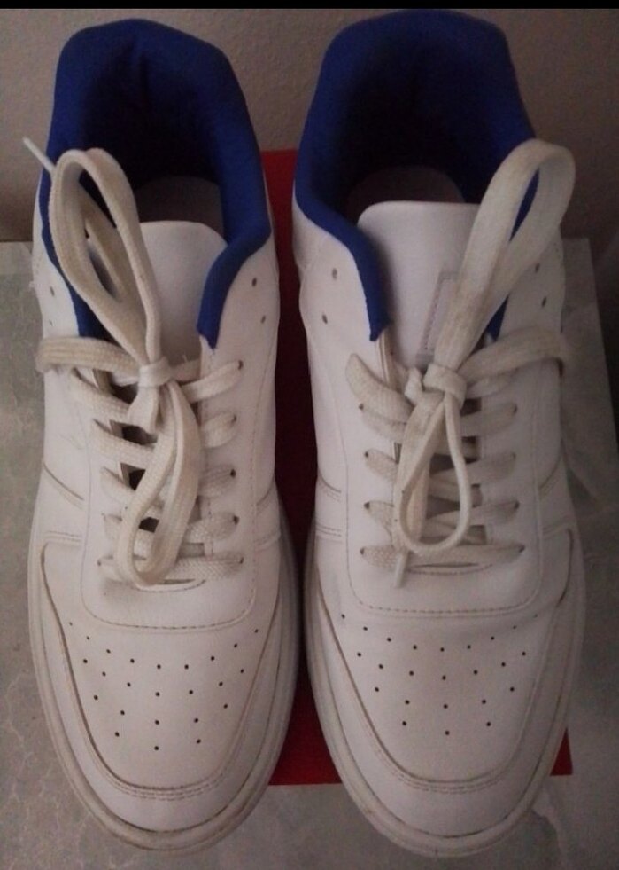 Beyaz bağcıklı Erkek sneakers, kauçuk tabanlı, sokak stiline uygun ve açık renkte. Spor ve günlük kullanıma uygundur. Tertemiz sorunsuz.