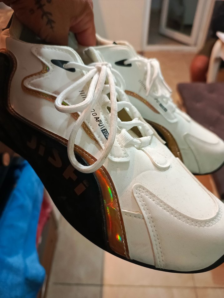 Beyaz bağcıklı spor stiletto topuklu sneakers, hafif yılan deseni detaylı. Kauçuk tabanlı, sportif sokak stili için uygun.