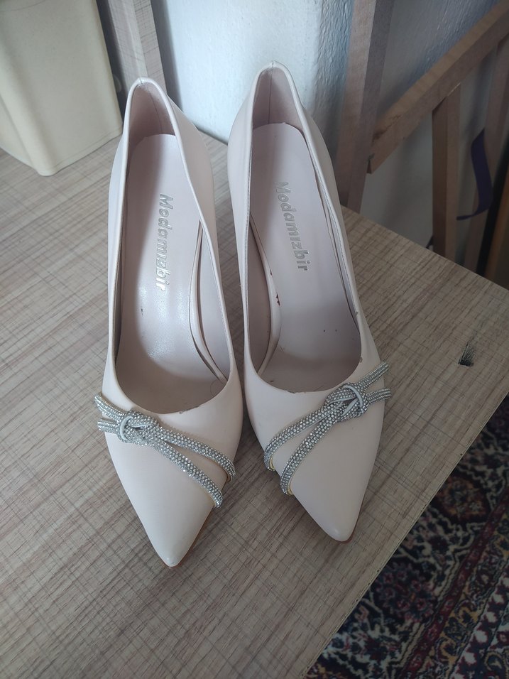 Beyaz bağcıklı stiletto topuklu ayakkabı, düğünler için modern klasik ve minimalist tarzda, rahat