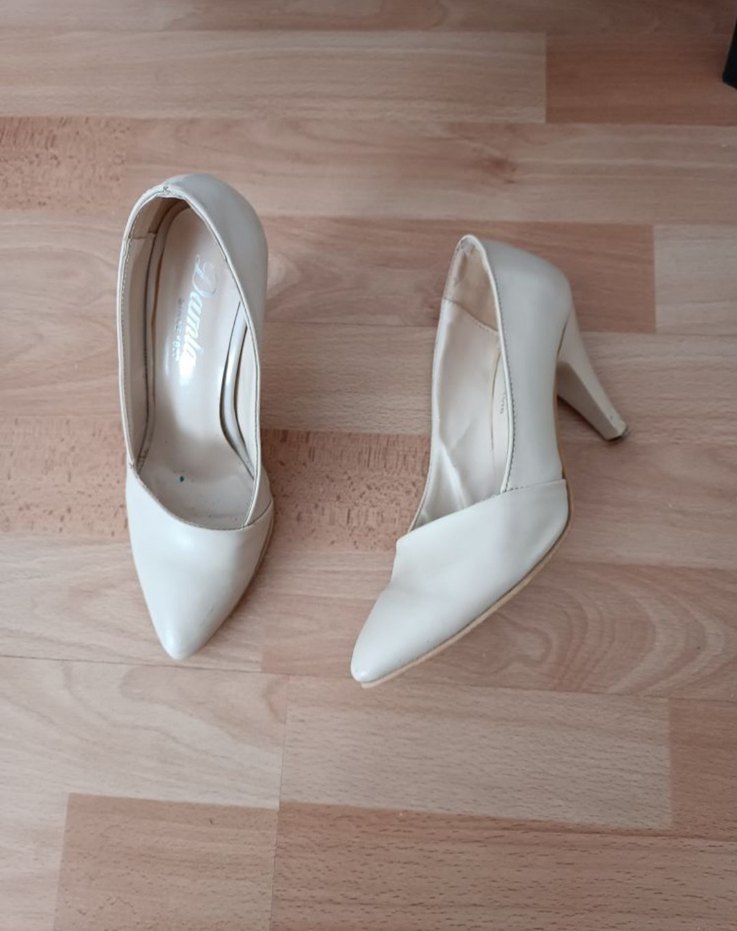 Beyaz bağcıklı stiletto topuklu ayakkabı, modern klasik tarzda ve kauçuk malzemeden üretilmiştir. Ofis için minimal ve şık bir seçim.