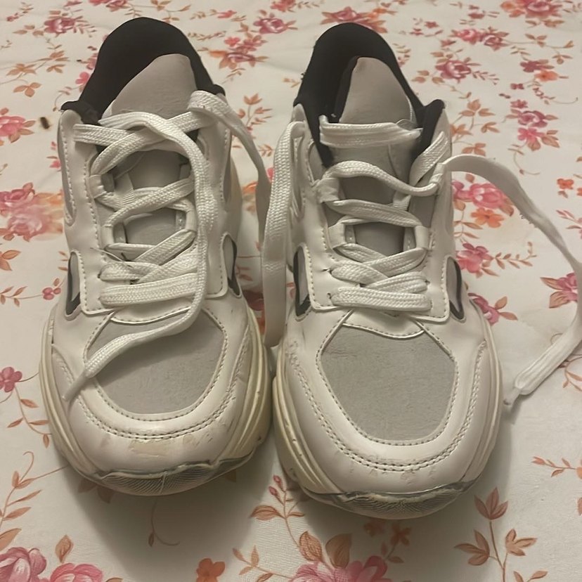 Beyaz bağcıklı sneakers, stiletto topuklu ve gri detaylı, kauçuk malzemeden, trend sokak stili için uygundur.