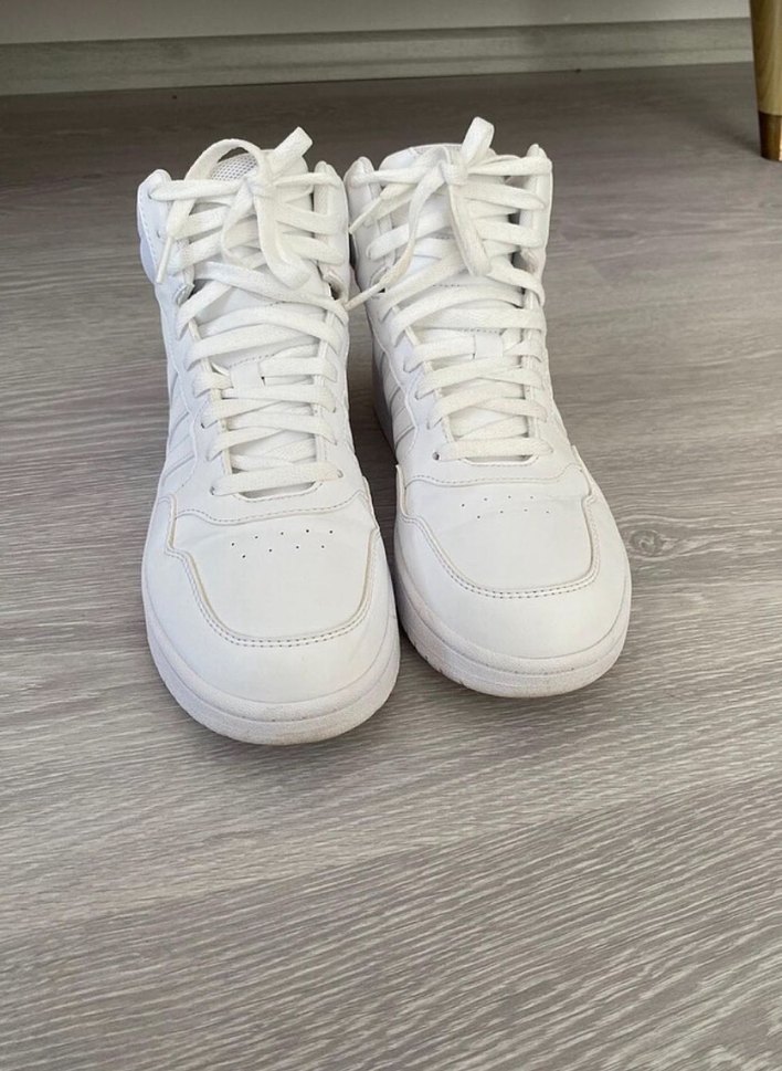 Beyaz bağcıklı unisex spor ayakkabısı, ince topuklu ve kauçuk malzemeden üretilmiştir. Düz ve desen içermeyen sokak stili için uygundur. Adidas markadir sadece bir kaç kez kullanıldı.