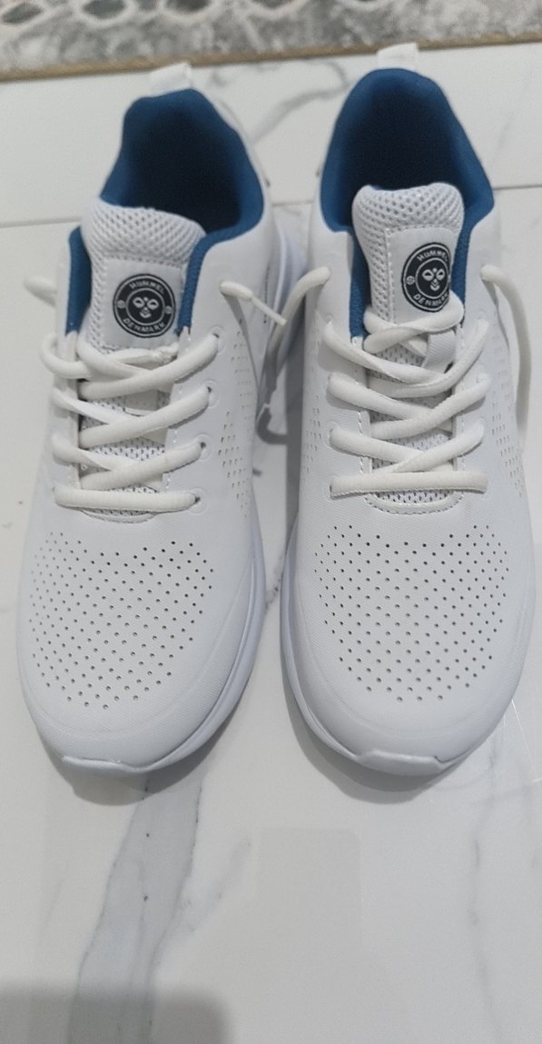 Bağcıklı, delikli detaylara sahip beyaz ünisex spor ayakkabısı. İnce topuklu ve kauçuk tabanlı, sokak stili ve spor görünüm sunar.
