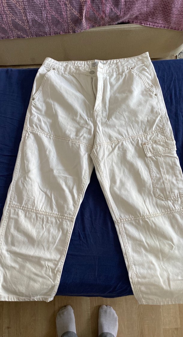 Yumuşak pamuk kumaştan, rahat kesim ve 34 Beden beyaz erkek pantolonu. Çok az kullanıldıGünlük rahat kullanıma uygun, zahmetsiz şıklık sunar.