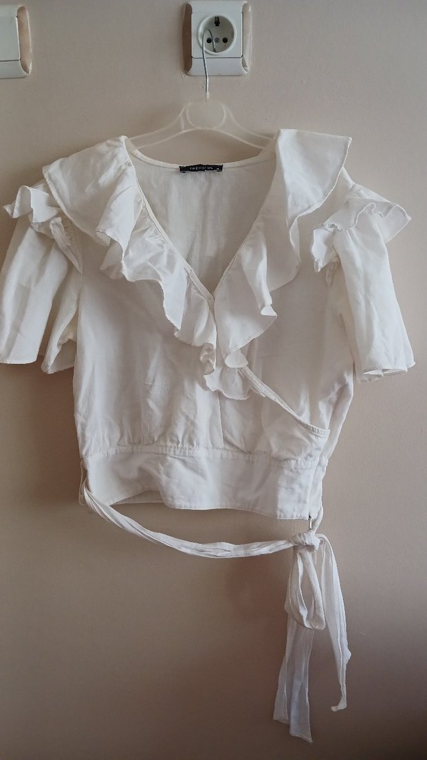 beyaz keten kumaşı çok severek kullandığım bir gömlek bağlamalı çok şık 34 beden