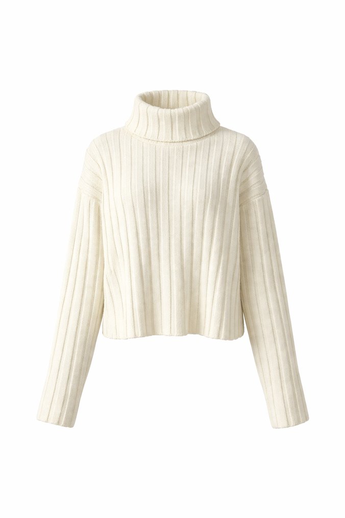 Beyaz renkli, balıkçı yaka ve uzun kollu yün triko kazak. Rahat ve bol kesimli, desensiz ve pastel tonlarda, günlük kullanıma uygun.
