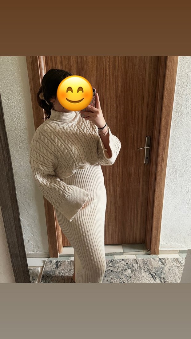 Askılı baharda giyilebilecek elbise, kışın ise üstüne crop hırkayı geçirebileceğiniz mevsimsel kıyafettir.Bej renktedir ürün ,balıkçı yaka ve uzun kollu, triko kumaştan yapılmış, vücuda oturan midi elbisedir. Rahat ve şık bir gündelik görünüm sağlar. Defosuzdur, üründe hiç bir sorun yoktur. Pazarlık yapılır.