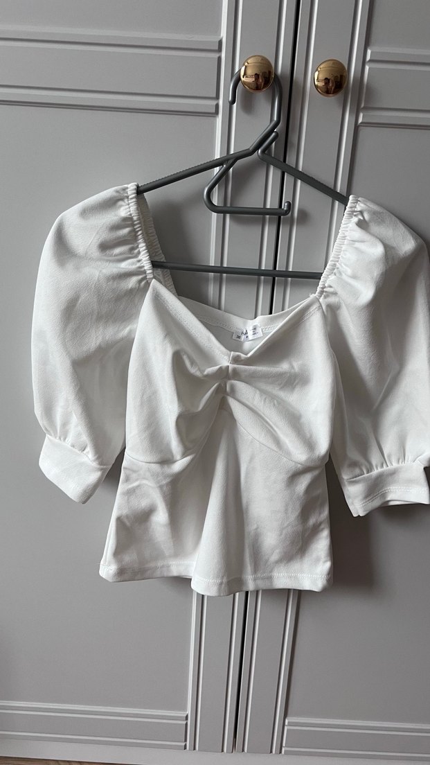 Beyaz balon kol tisort