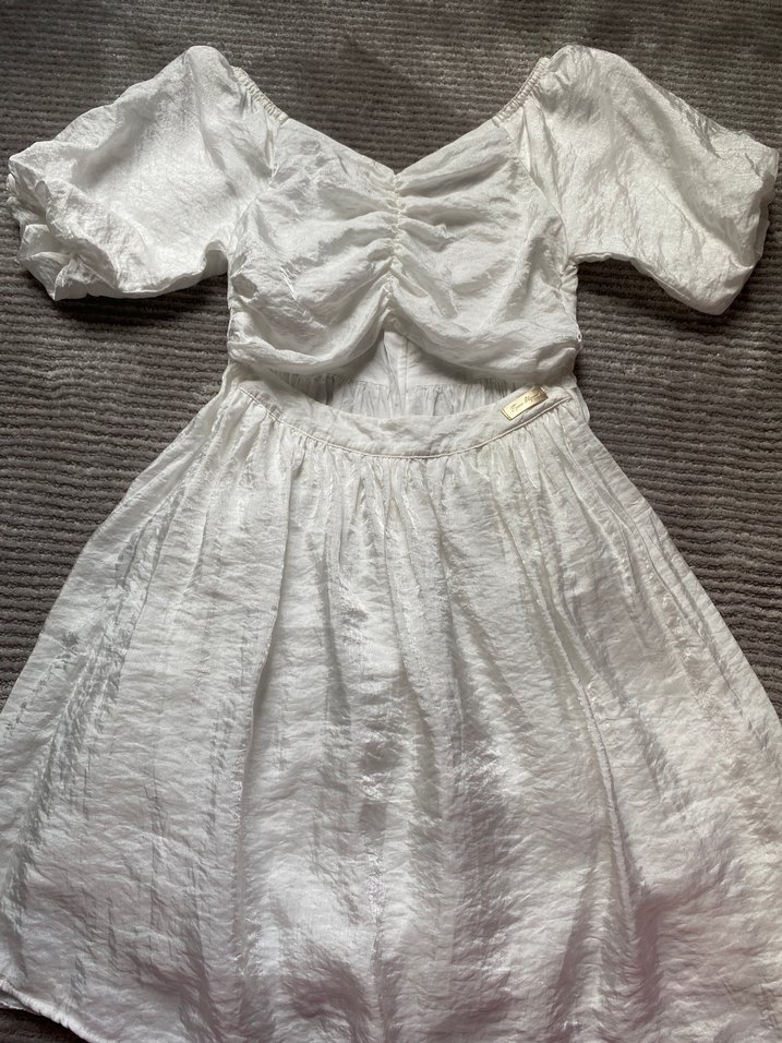 Beyaz bambu midi elbise, bol kesim, kısa balon kollu, tekne yakalı ve fırfır detaylıdır. Yumuşak ve doğal dokuludur, düğünler için uygundur. Marka tyess harika bir ürün asla pişman olmayacağınız bir model göründüğünden daha güzel hiç bir sorunu yok lekesi defosu yok