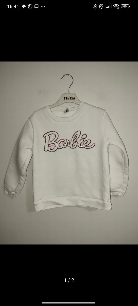 Beyaz Barbie Baskılı Kız Sweatshirt