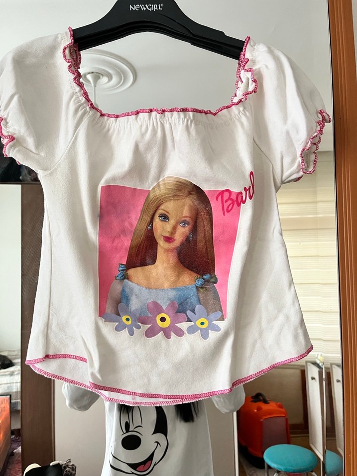 Beyaz Barbie Baskılı Kız Tişörtü
