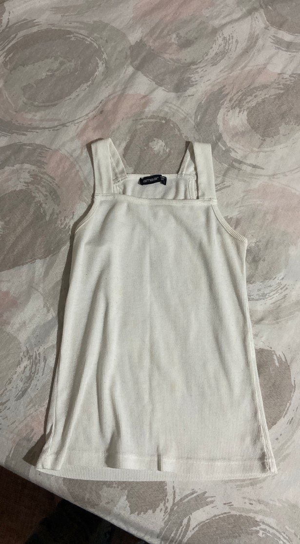 Yumuşak sentetik kumaştan, kare yaka ve kolsuz, beyaz basic çizgili bluz. Günlük kullanıma uygun sade ve şık.