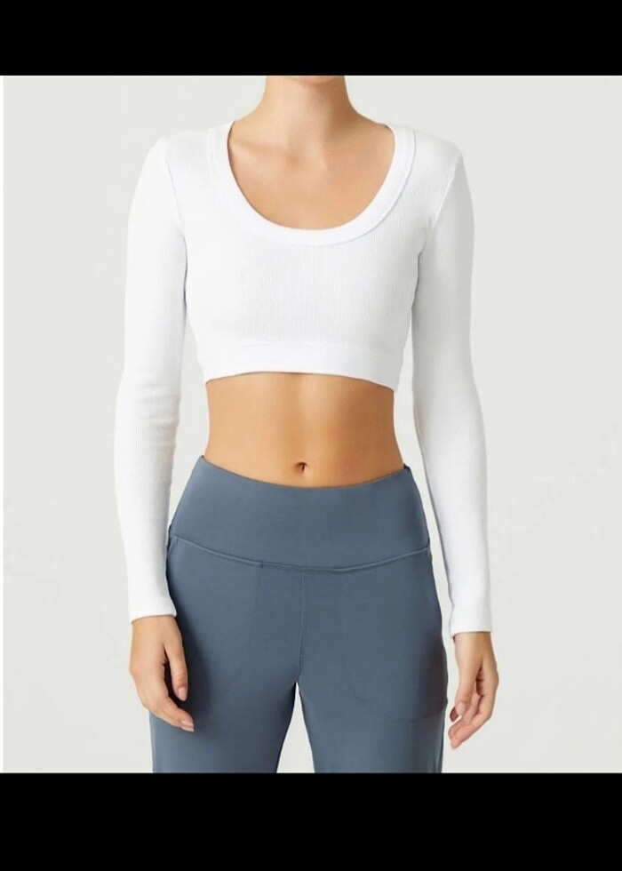 Beyaz basic crop bluz