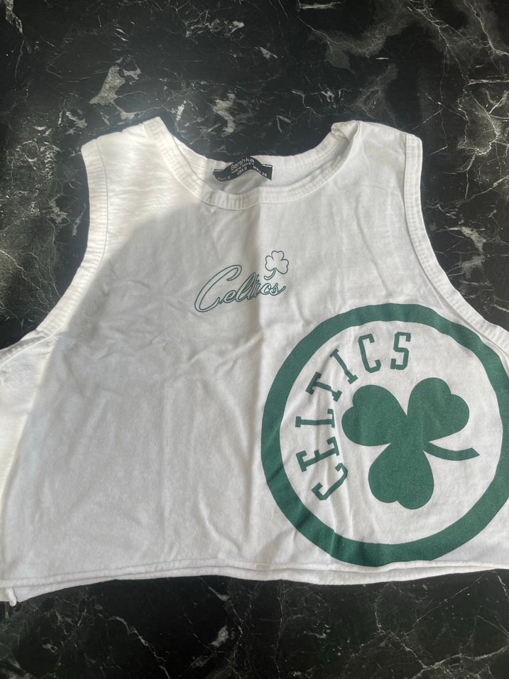 Beyaz pamuklu, baskılı Celtics desenli, kolsuz atlet. Yuvarlak yaka ve salaş kesimli, spor ve günlük kullanıma uygun.