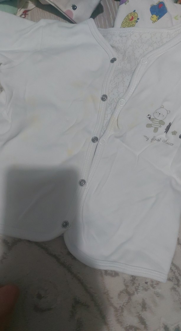 Beyaz renkli, pastel tonlarda baskılı ve ayıcık desenli bebek atleti. Kolay giydirme için çıtçıt düğmeler bulunur. Beyaz kısım lekeleri yikandiginda çıkar tavşanlı kısım hiç kullanılmadı çift taraflı giyiliyor