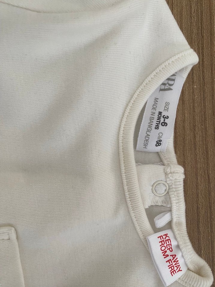 Baskılı, beyaz bebek atlet, yakada çıtçıt düğmeli. Bangladeş'te üretilmiştir. Yumuşak ve rahat kumaş.