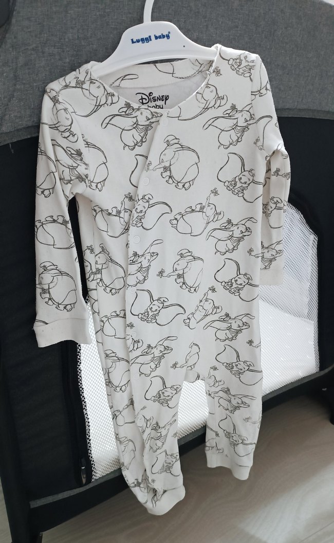9/12ay Beyaz, uzun kollu bebek tulumu, fermuarlı ve baskılı desene sahip. Yuvarlak yakalı, yumuşak sentetik kumaştan, sokak stili için uygundur.