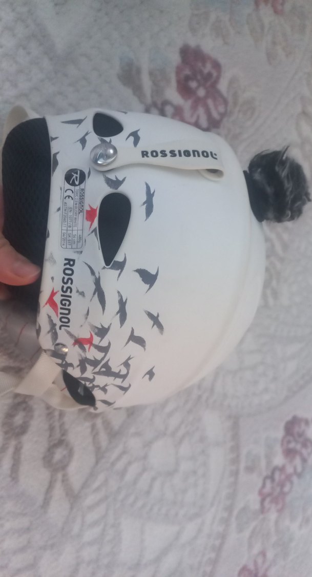 Beyaz baskılı desenli, gri ve kırmızı kuş figürlü, kürk detaylı yumuşak kumaştan Rossignol marka biker kask. ️KEDI KUYRUGU DETAYLI ÇOCUK KASK SAĞLAM