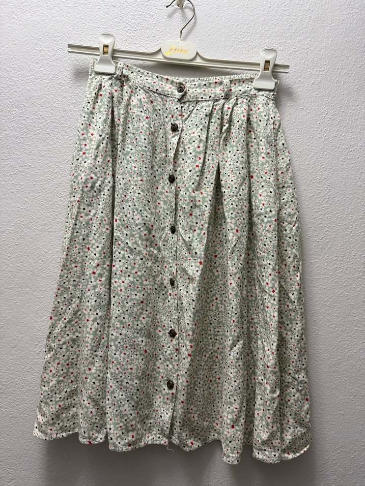 Pamuk kumaştan, bol kesim, drapeli ve pastel renkli çiçek desenli, vintage bohem tarzında günlük kullanıma uygun etek.