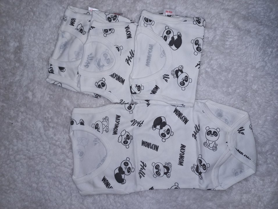 Yumuşak kumaştan, renkli baskılı panda desenli beyaz çocuk atlet dörtlü set. Rahat kullanım sağlar. 1-3-6-9 ay ile uyumludur sıfırdır
