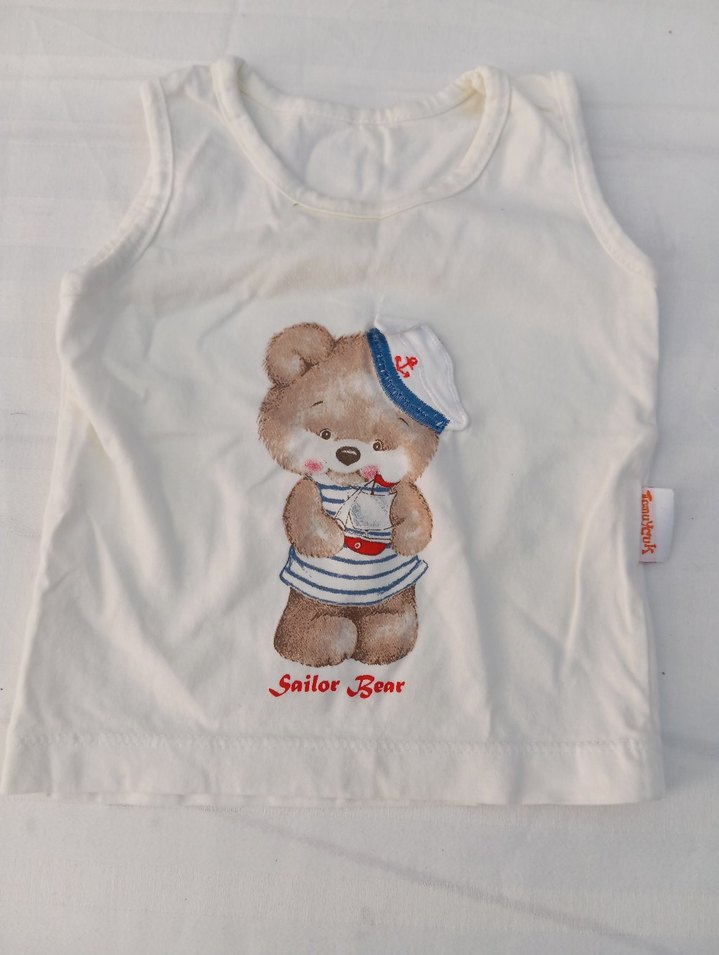 Beyaz renkte, pastel tonlarda baskılı denizci ayı figürlü çocuk atleti. Yumuşak ve rahat kumaştan yapılmıştır.
