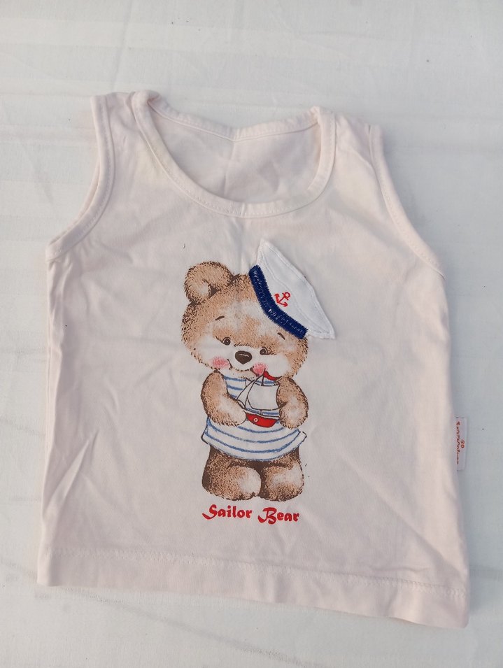Beyaz renkli, baskılı denizci ayı figürlü çocuk atleti. Yumuşak ve rahat kumaştan üretilmiştir.