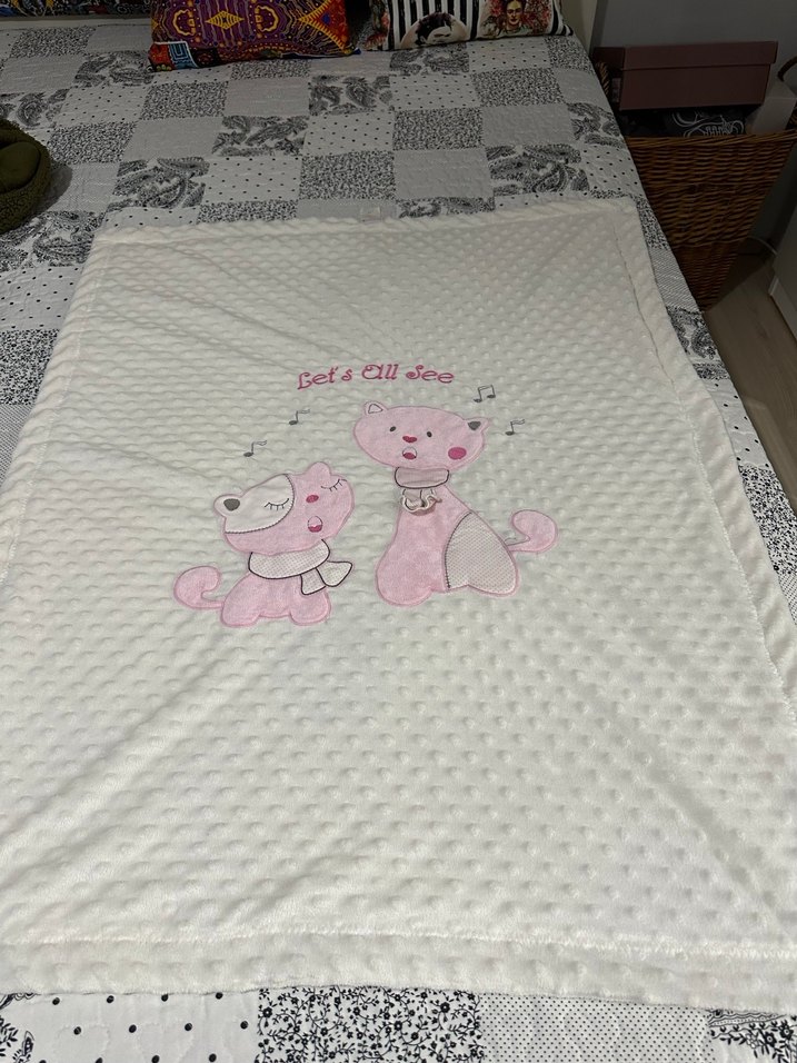Beyaz Baskılı Çocuk Battaniyesi