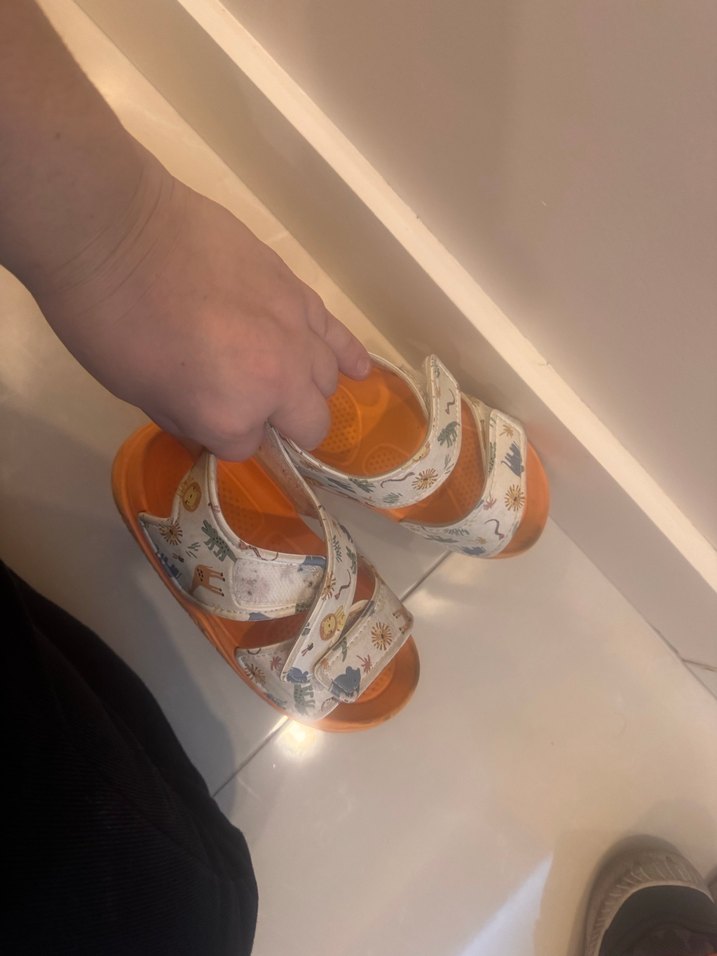 Baskılı desenli, bantlı beyaz çocuk sandaletleri, dayanıklı kauçuk malzemeden, canlı açık renkte ve sokak stili uyumlu. 27/28 numara