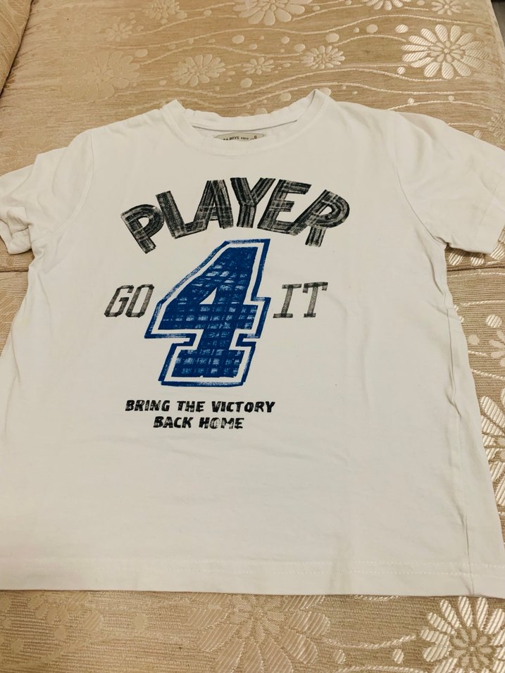 Pamuk beyaz cocuktişörtü, kısa kollu ve bol kesimdir. Üzerinde 'PLAYER 4 GO IT' ve motive edici yazılar baskılıdır. Trendy rahat sokak stili için uygundur.